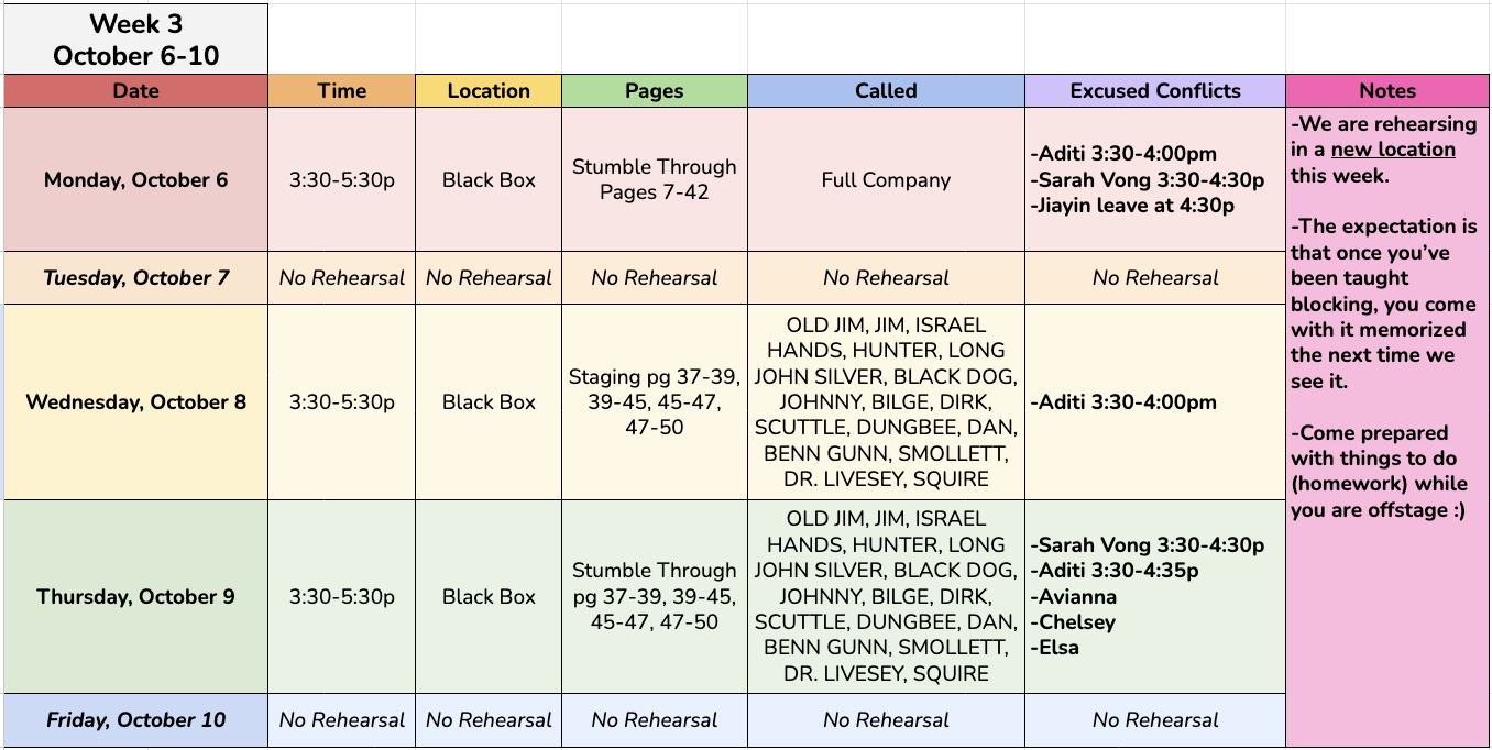 REHEARSAL SCHEDULE
